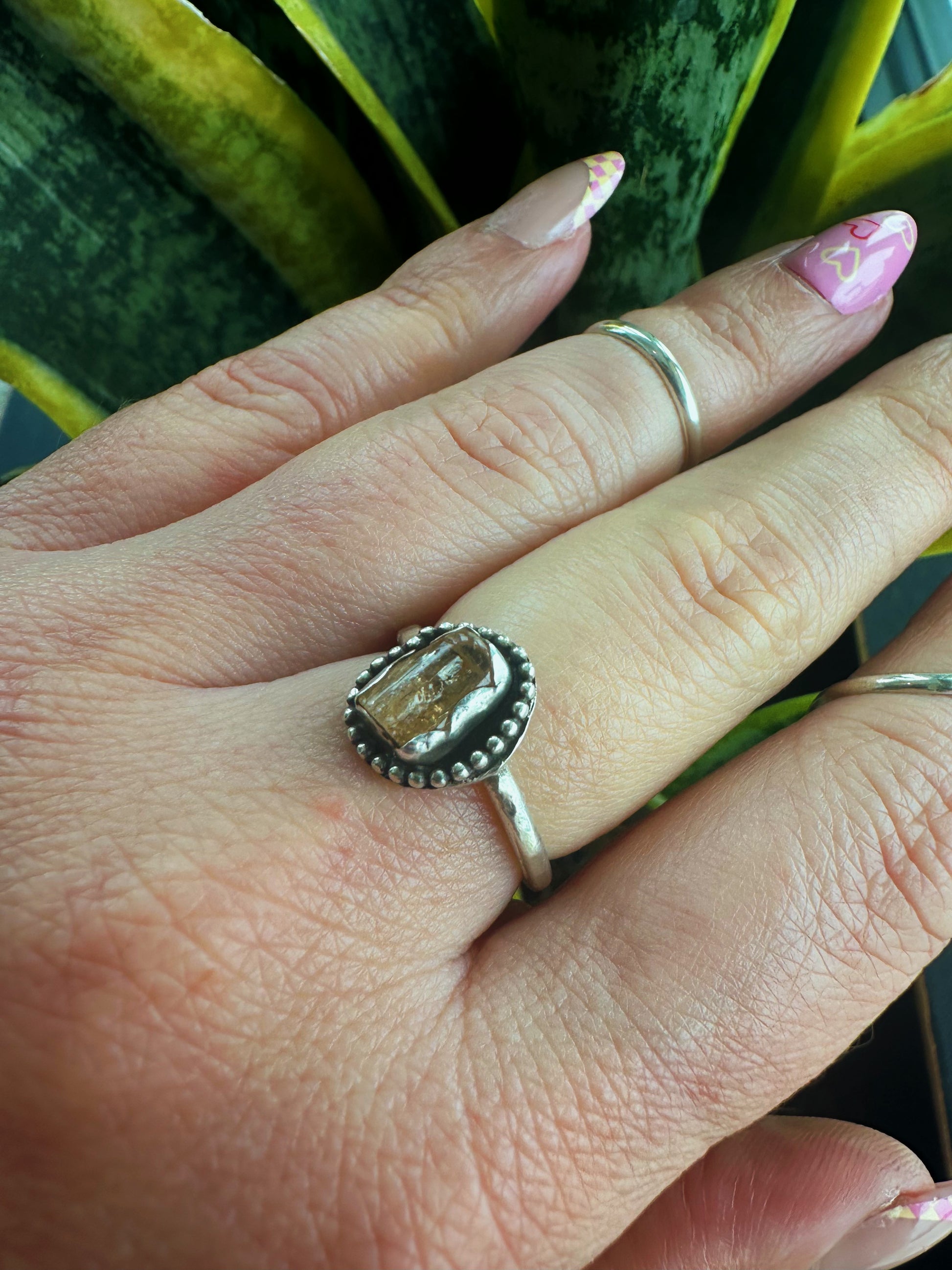 Golden Apatite Ring - Argentium Silver .940 - Size 7