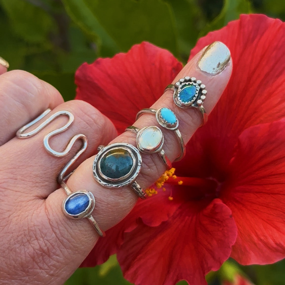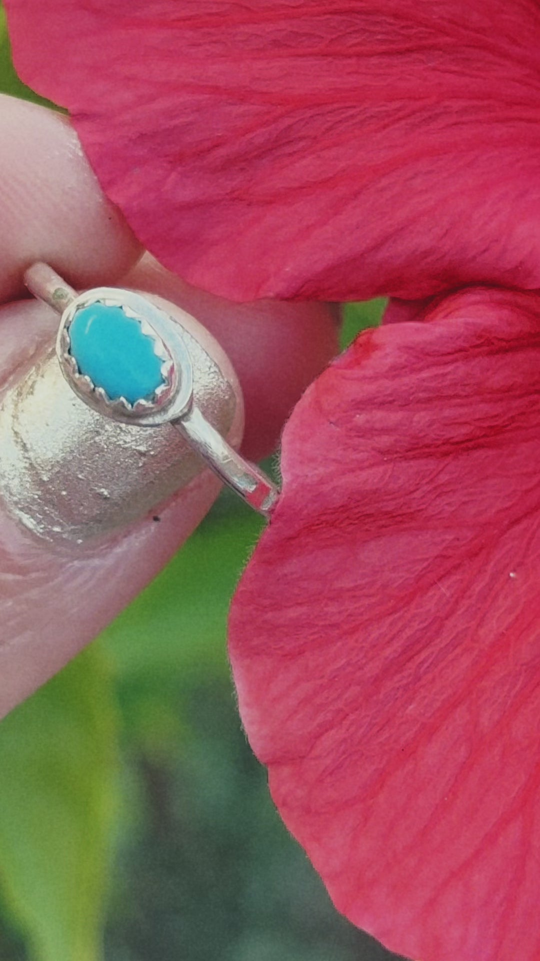 Handcrafted Kingman Turquoise Ring made with Argentium Silver 940. Argentium silver is tarnish resistant, stronger than sterling, and hypoallergenic. Size 7.5