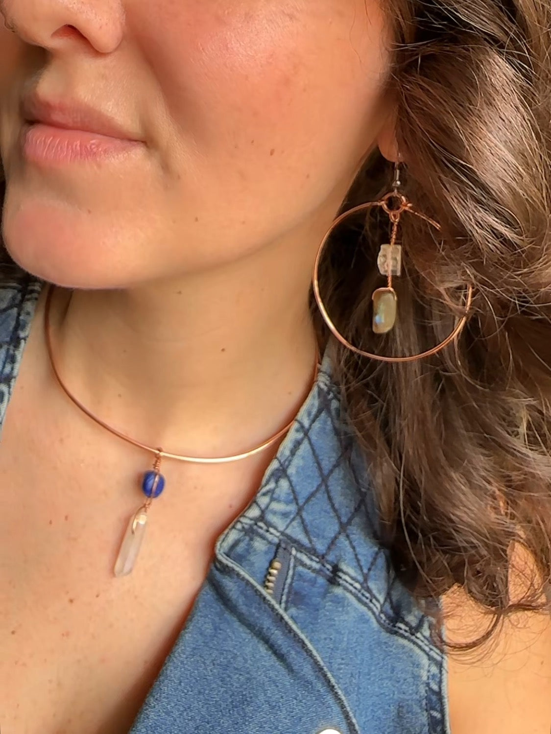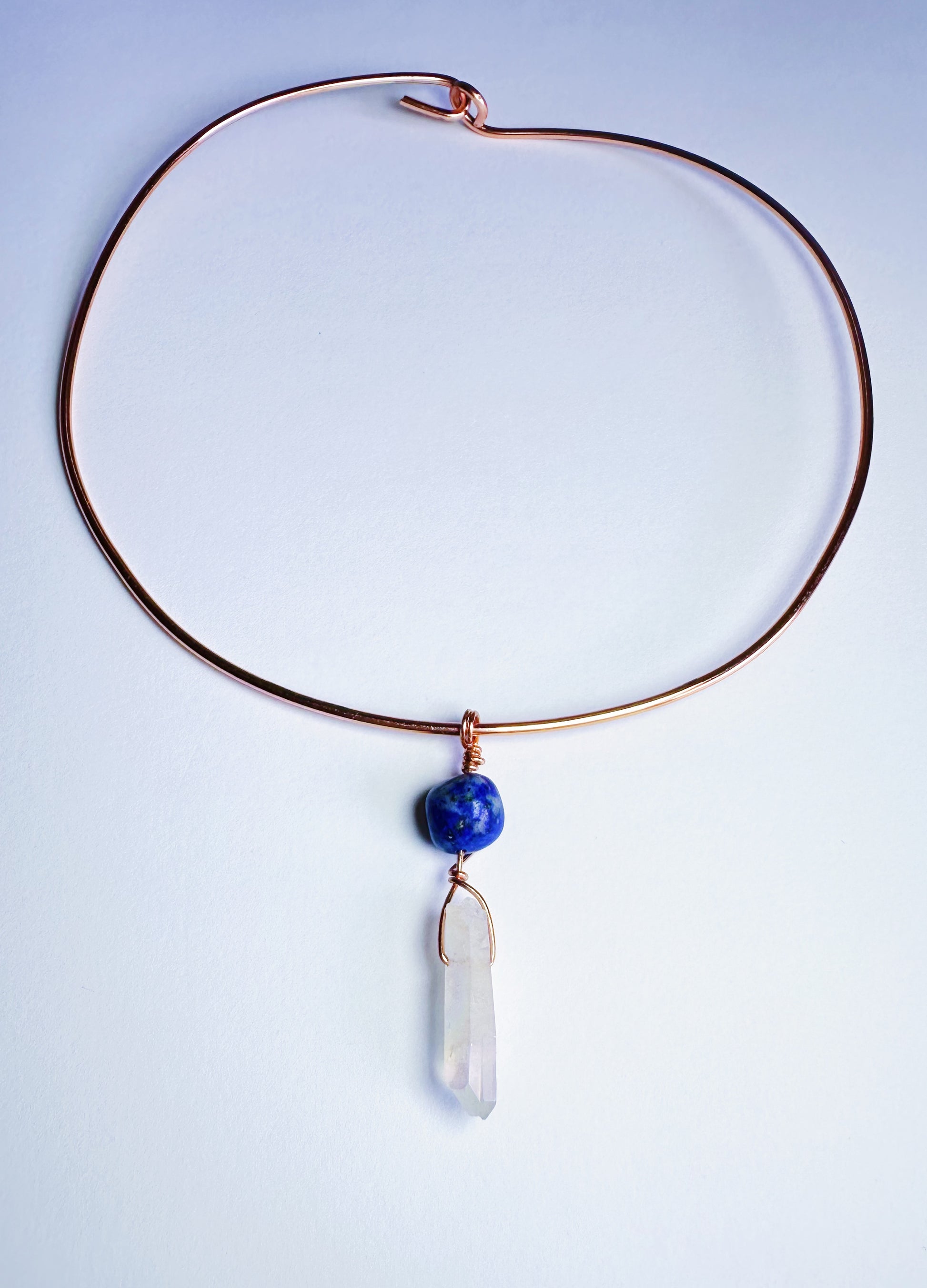 Lapis Lazuli & Quartz Crystal Wire Collar Necklace