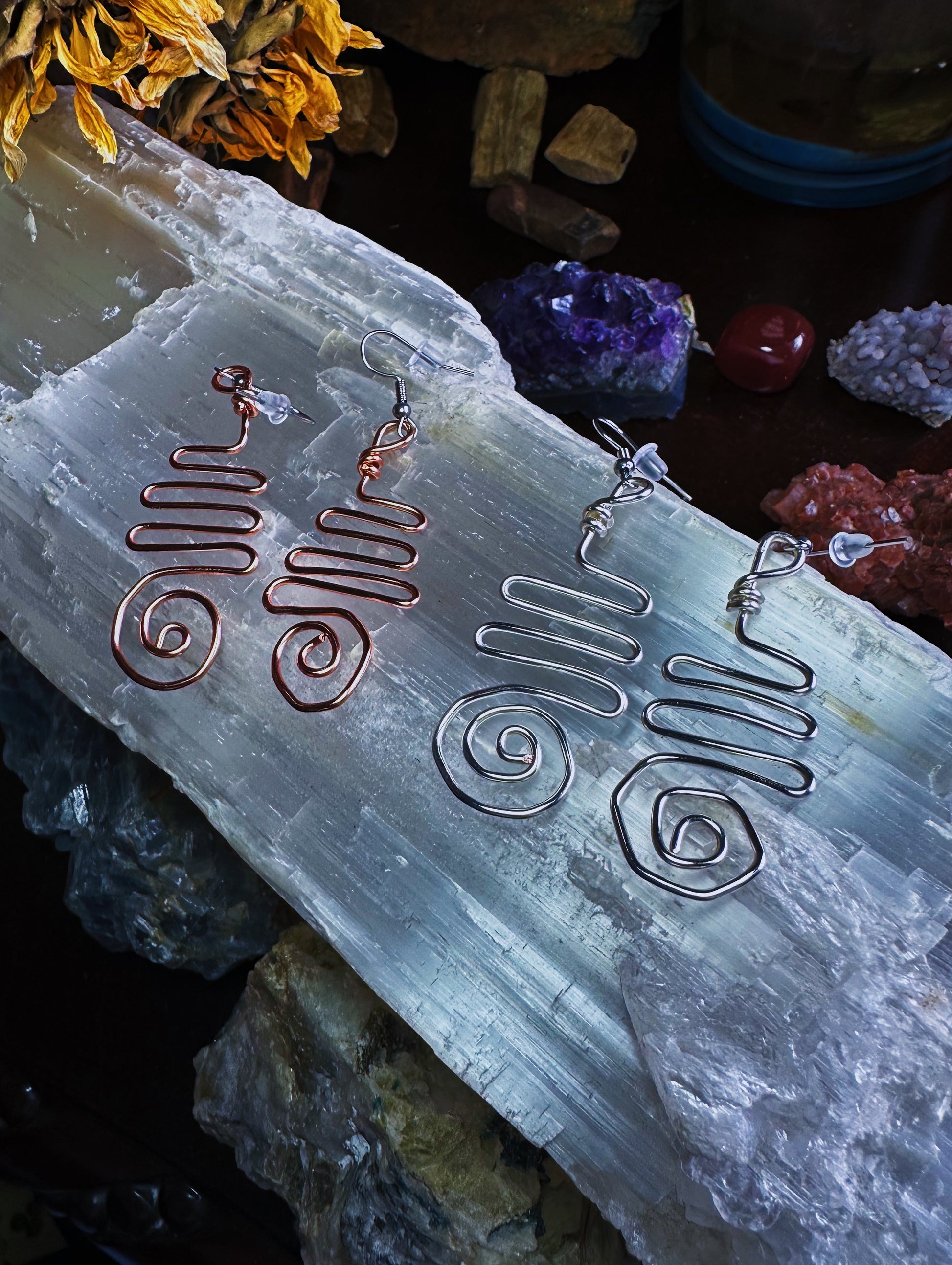 These handcrafted wave earrings flow into a graceful circle spiral at the base, symbolizing life’s natural cycles and the continuous journey of growth, change, and renewal. The spiral is an ancient sacred symbol found in cultures worldwide, representing the path from outer consciousness to inner awareness, and the infinite connection between the self and the universe.
