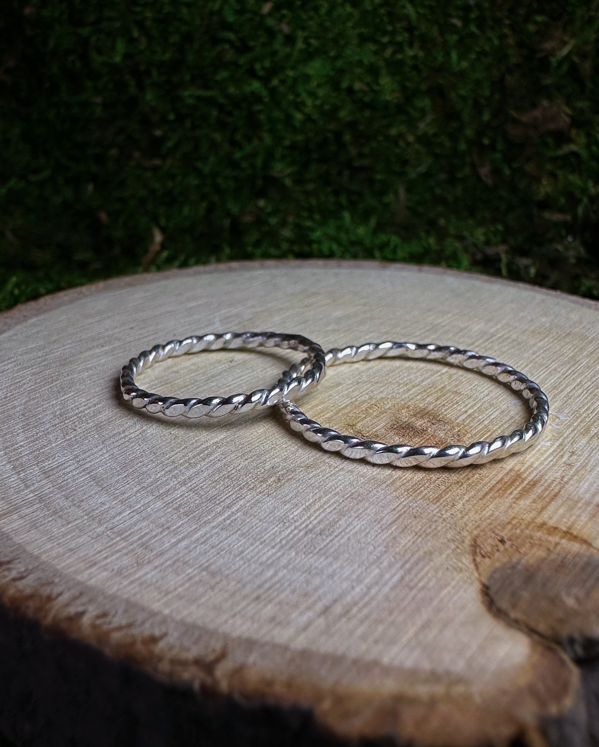 These 1.7mm twist silver stacker rings glisten in the sunshine. They are handcrafted by me and made to order using Argentium Silver (.940). MADE TO ORDER IS CLOSED UNTIL 01/2026 whats available is what I have left in stock!